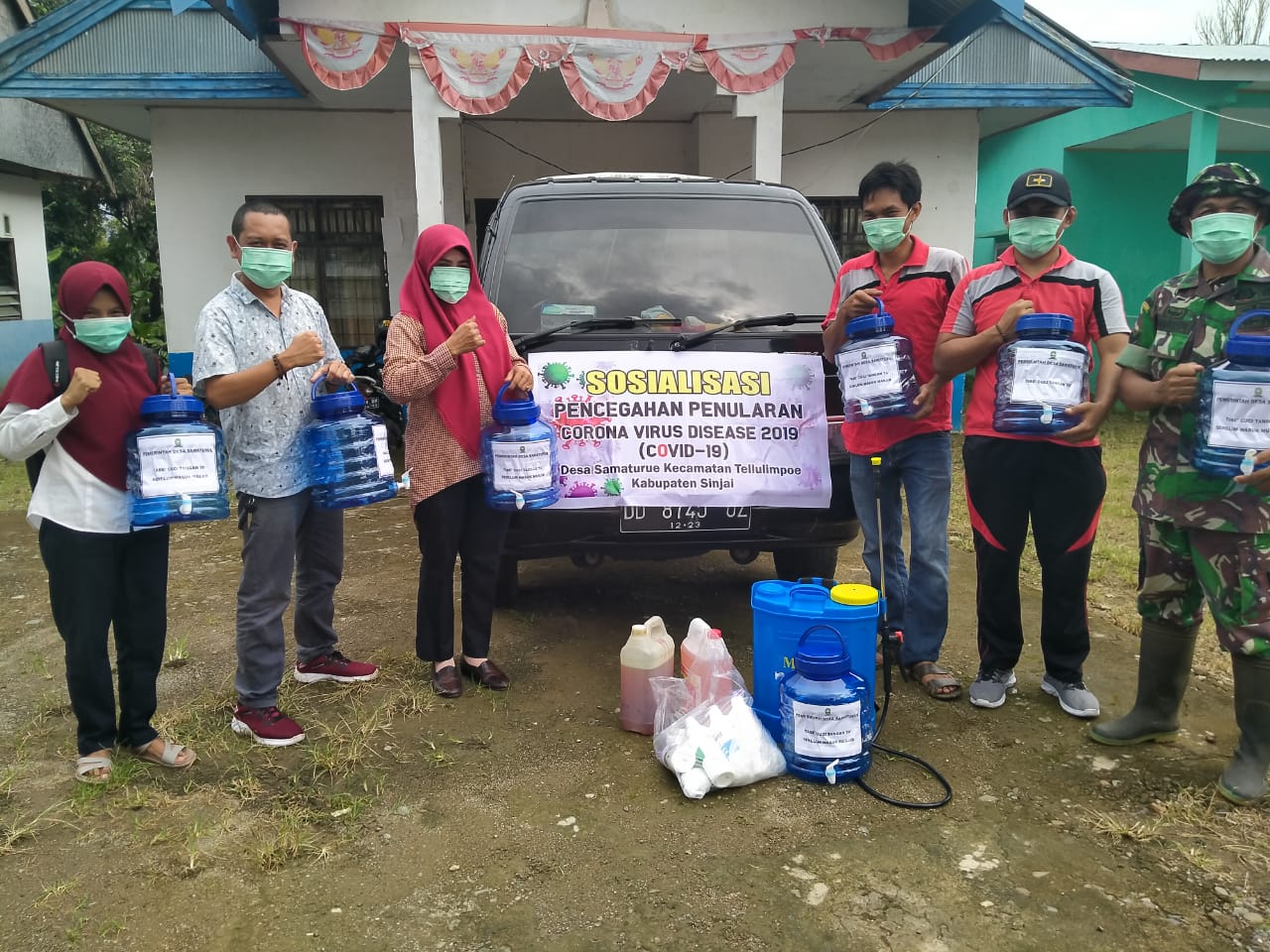 SINJAI, Suara Jelata— Guna mengantisipasi Coronavirus Disease 2019 (Covid-19) pemerintah Desa Samaturue, Kecamatan Tellulimpoe, Kabupaten Sinjai bersama Tim Relawan Desa Lawan Covid-19 Desa Samaturue melakukan sosialisasi Covid-19 penyemprotan disinfektan.