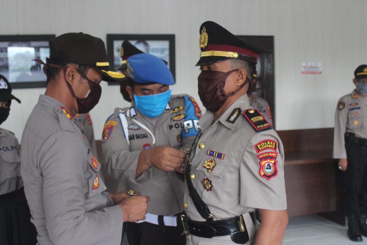 Kapolres Soppeng dalam amanatnya mengungkapkan bahwa, kegiatan serah terima ini dilaksanakan dengan sangat sederhana sebagaimana kita ketahui bersama adanya penyebaran virus corona atau covid-19 dan ini merupakan suatu bentuk pencegahan yang kita lakukan saat ini.