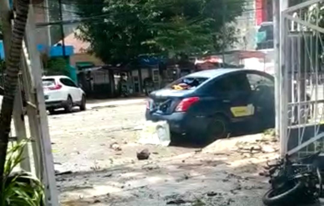 Tidak hanya itu, mobil taksi yang berada disekitaran lokasi ikut hancur akibat ledakan.