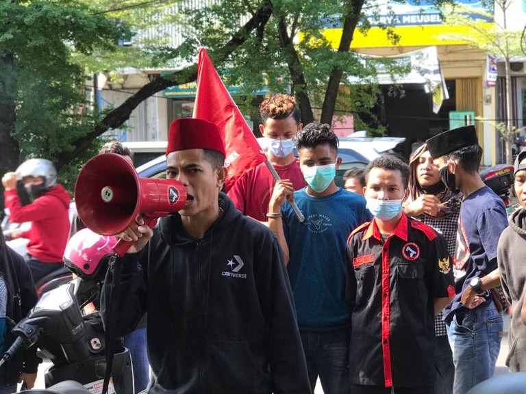 MAKASSAR, Suara Jelata— Dewan Pimpinan Pusat (DPP) Organisasi Pergerakan Mahasiswa (OPM) menggelar aksi unjuk rasa (Unras) di depan Bank Bukopin Panakkukang, Jalan Pengayoman Ruko Mirah II-20 Panakukang Makassar. Selasa, (13/07/21).