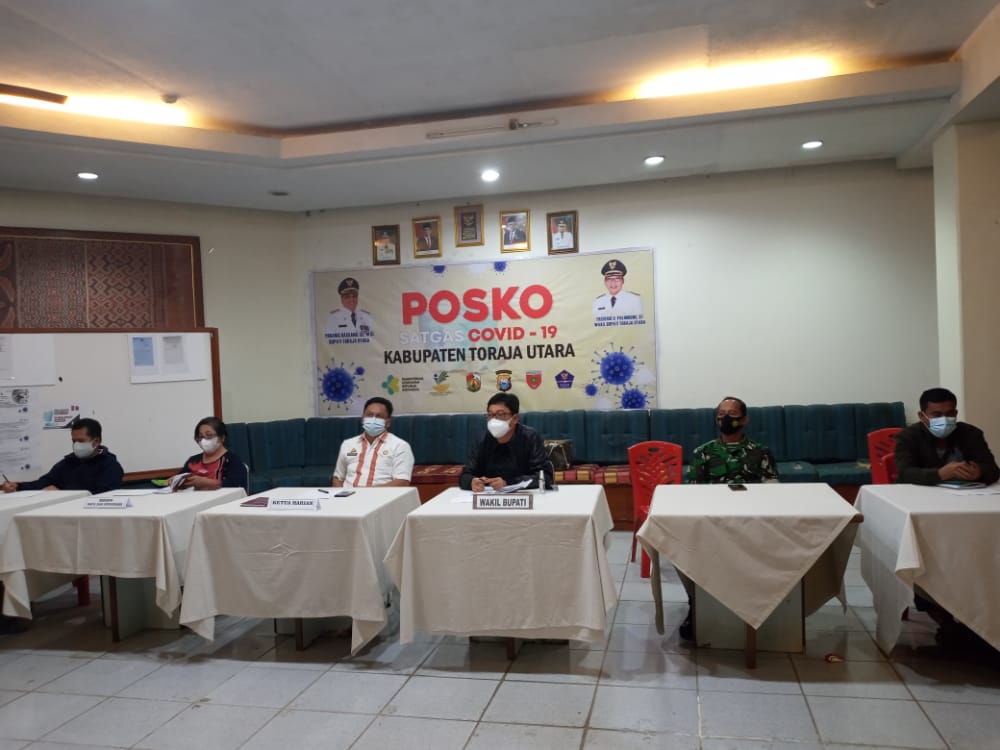 TORUT, Suara Jelata— Ada empat hal yang dilakukan Pemerintah Kabupaten Toraja Utara (Torut) menyusun langka dalam penanganan Covid-19. Seperti pemulihan ekonomi dan kesehatan, pembentukan posko, vaksinasi, serta persiapan jika adanya pelonjakan kasus. Kamis (25/7/2021)