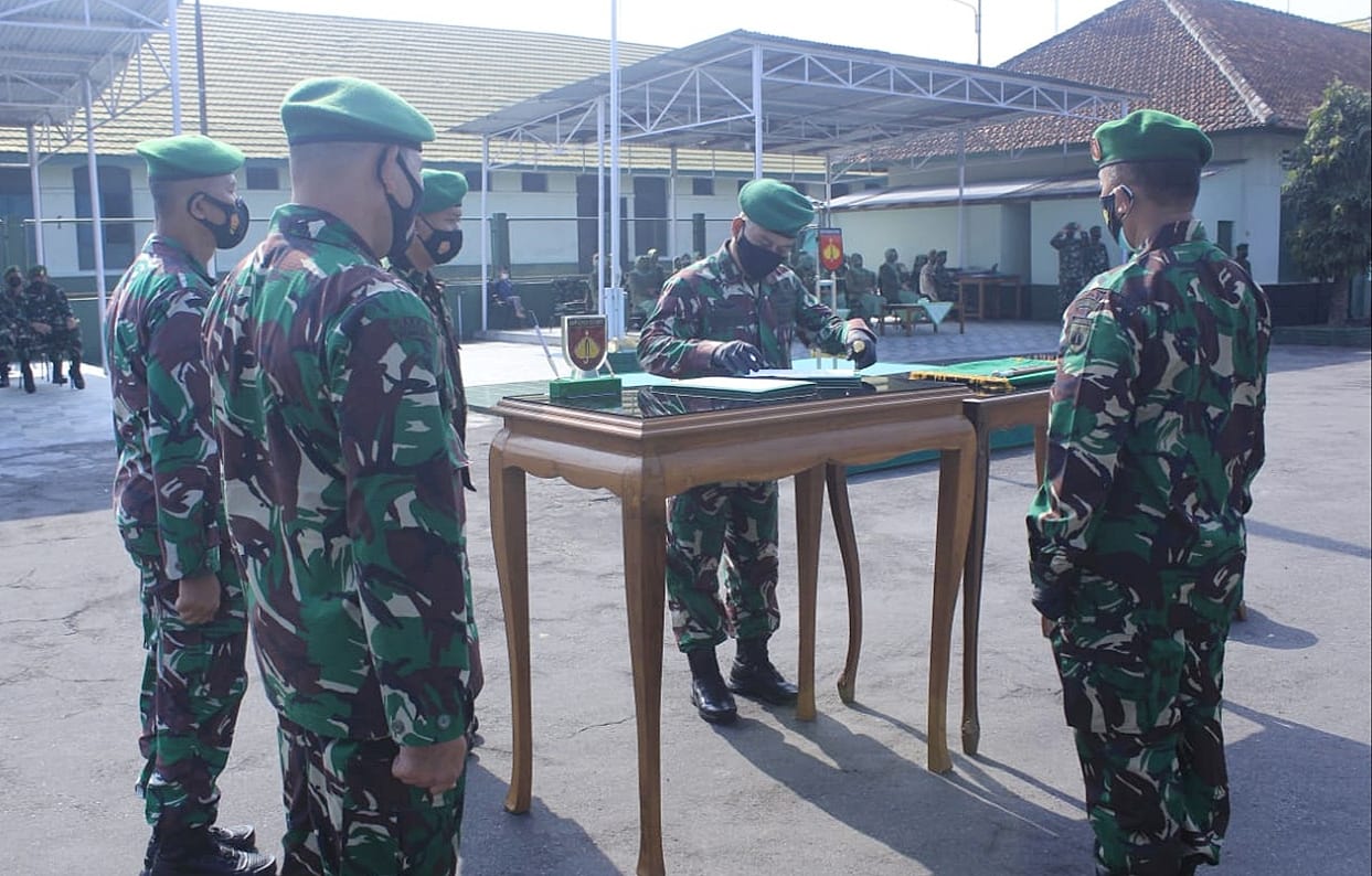 MAGELANG, Suara Jelata— Komandan Rindam IV/Diponegoro, Kolonel Inf Tarsono, S.I.P., M.M. memimpin upacara penerimaan anggota baru dan serah terima jabatan (Sertijab) Dandodik Kejuruan yang digelar di lapangan Mako Rindam IV/Diponegoro, dengan Komandan Upacara Mayor Inf Sairin Wadan Dodikjur. Jumat, (23/07/2021).