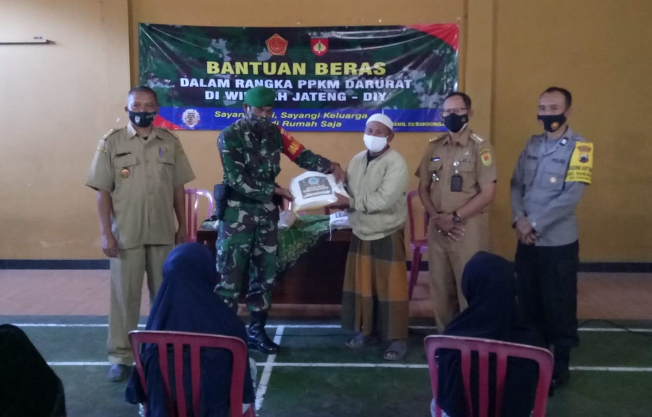 Komandan Koramil 03/Bandongan Kapten Inf Mabruron menjelaskan, untuk sasaran penerima bantuan kali ini dipastikan masyarakat yang kurang mampu. Serta warga terdampak pandemi Covid-19. Hal ini akan dipercepat agar penyaluran segera sampai sasaran.