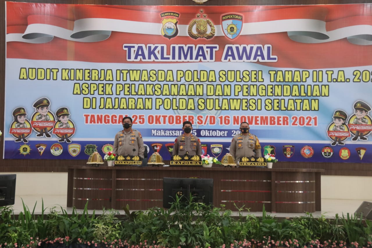 Kabidhumas Polda Sulsel, Kombes Pol. E. Zulpan, dalam keterangan tertulis mengatakan taklimat awal audit kinerja itwasda Polda Sulsel tahap II tersebut meliputi aspek pelaksanaan dan pengendalian TA. 2021.