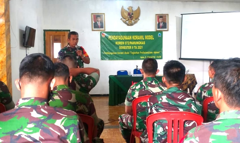 MAGELANG JATENG, Suara Jelata – Memasuki hari kedua kegiatan Pemberdayaan Koramil Model di Koramil 23/Magelang Utara Kodim 0705/Magelang, para peserta menerima pelajaran teori tentang ilmu kewilayahan. Baik pengetahuan militer kewilayahan maupun materi non kemiliteran.