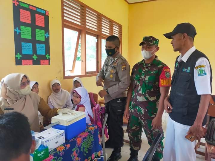 Bukti Sinergitas TNI-POLRI Babinsa dan Babinkamtibmas melaksanakan pendampingan serbuan vaksinasi untuk anak 6-11 tahun dilaksanakan sebagai upaya pencegahan penyebaran Covid-19 serta mempercepat capaian herd immunity.