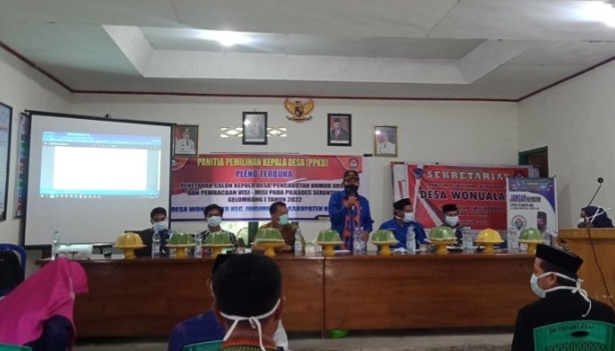 KOLAKA, Suara Jelata— Panitia Pemilihan Kepala Desa (PPKD) Desa Wonualaku melaksanakan Pleno Terbuka Penetapan Calon Kepala Desa, Pencabutan Nomor Urut dan Pembacaan Visi Misi pada Pilkades Serentak Gelombang 1 Tahun 2022.