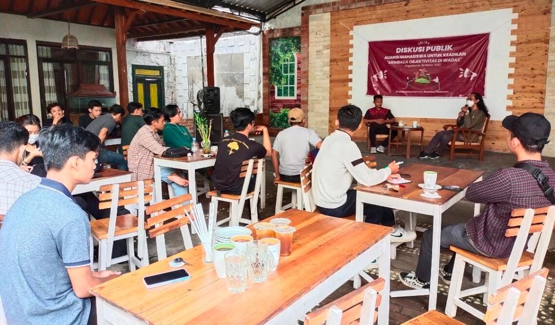 Elemen gerakan mahasiswa yang ada di Yogyakarta menggelar kajian dalam Diskusi Publik yang bertema ‘Membaca Objektivitas di Wadas’.