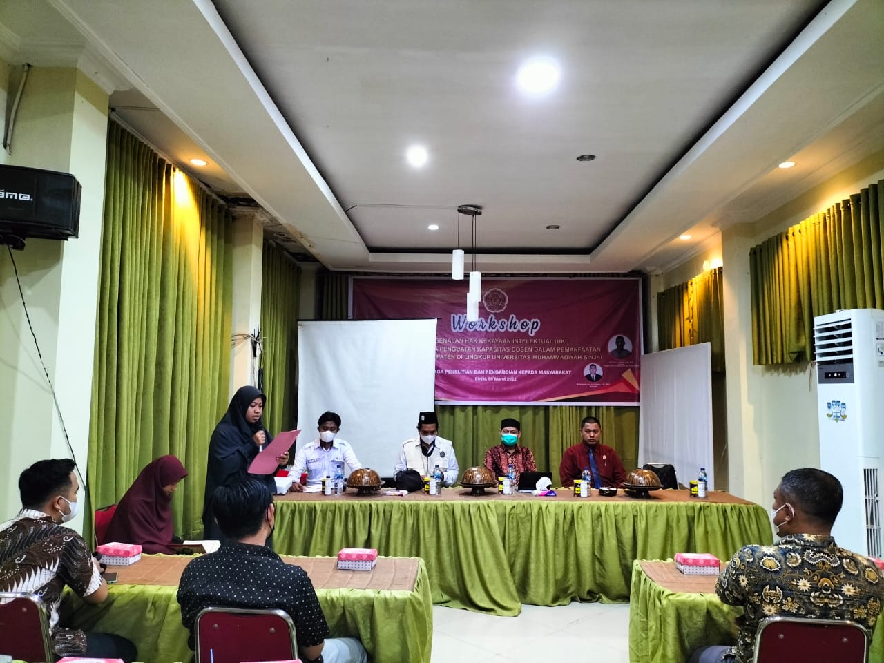 Ketua LP2M UMSi Baharuddin menyampaikan harapan dalam kegiatan ini dapat bermanfaat bagi dosen dalam hal menumbuhkan minat dosen peneliti UMSi untuk menghasilkan hasil penelitian berpotensi HKI.