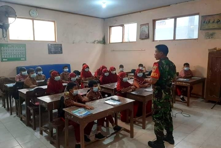 JEPARA JATENG, Suara Jelata – Di bulan suci Ramadan ini, anggota Koramil 04/Pecangaan Babinsa Sertu Nur Chamim terus melakukan pembinaan wilayah dengan menyambangi Sekolah Dasar (SD) Negeri 5 Troso, Kecamatan Pecangaan, Kabupaten Jepara, Kamis (07/04/2022).