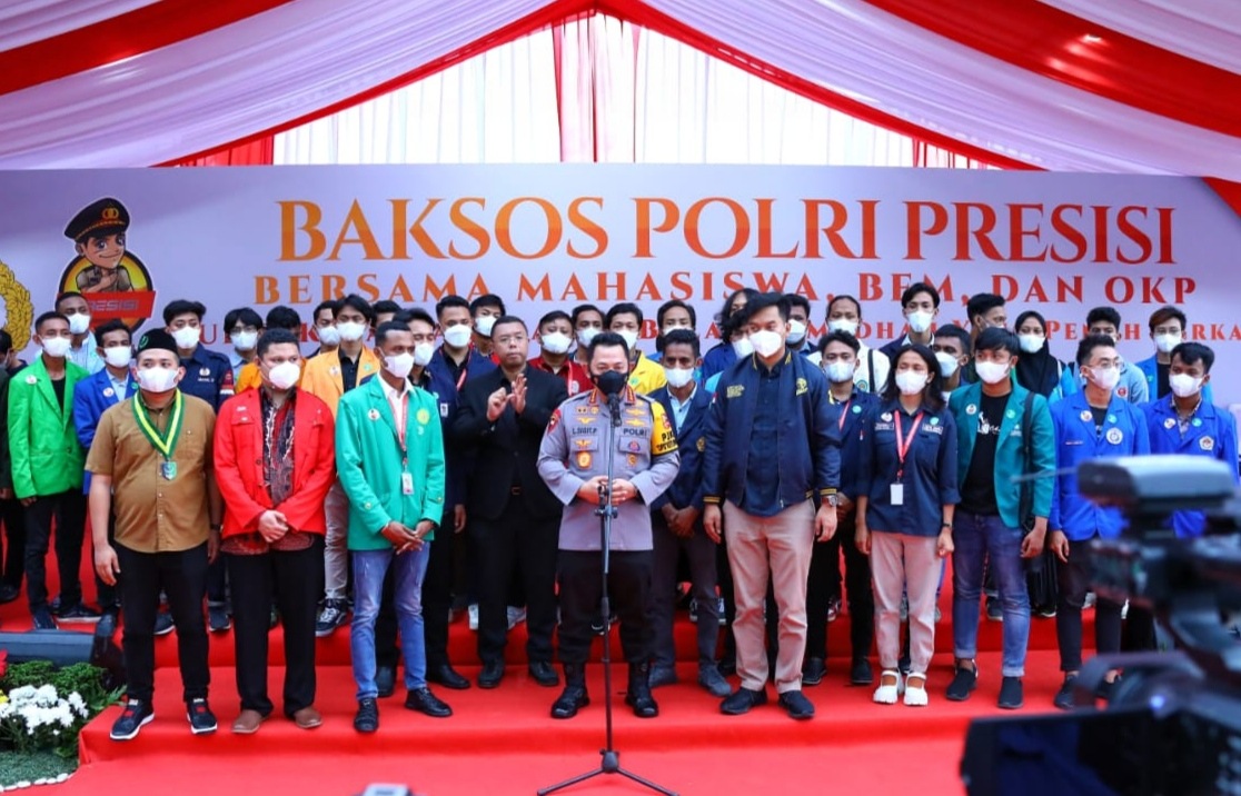 Dalam sambutannya, Kapolri Jenderal Listyo Sigit menyampaikan apresiasi dan terima kasih atas inisiatif dan kerja sama yang diinisiasi BEM dan OKP.