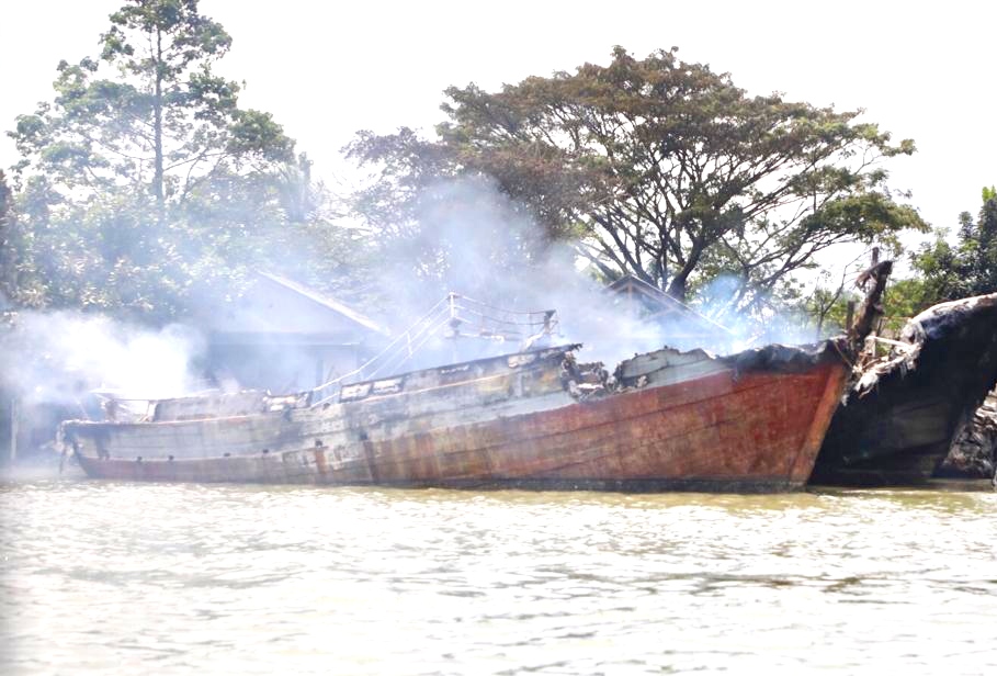 “Begitu terbakar, sejumlah kapal tercerai-berai karena adanya pasang surut ombak,” tandasnya.