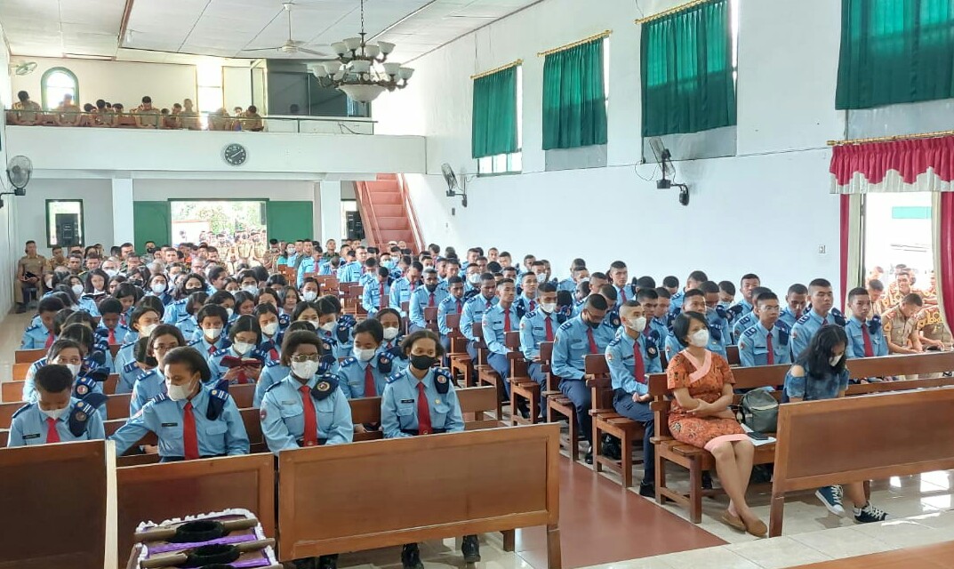 MAGELANG JATENG, Suara Jelata – Taruna Akademi Militer, organik (Dosen dan Pengasuh) Akademi Militer beserta keluarga melaksanakan ibadah Misa Hari Raya Kenaikan Tuhan Yesus Kristus. Ibadah diikuti pula oleh siswa Semapa PK TNI, Siswa SMA Taruna Nusantara (TN) dan Siswa Pertamina yang beragama Katholik. Ibadah bertempat di Gereja Katolik Santo Mikael Panca Arga, yang dipimpin oleh Rm. Gregorius Suprayitno, Pr. dan Rm. Paulus Tri Ardhianto, Pr., Kamis (26/05/2022).