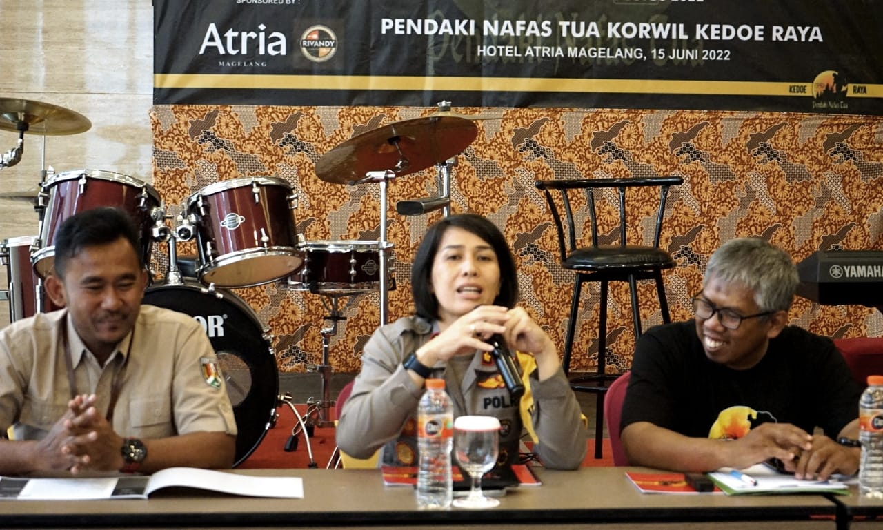 KOTA MAGELANG, Suara Jelata Kapolres Magelang Kota Polda Jawa Tengah AKBP Yolanda Evalyn Sebayang, S.I.K., M.M. menghadiri kegiatan Pers Conference Rencana Pengibaran 77 Bendera di 7 Gunung di wilayah Kedu Raya oleh Pendaki Nafas Tua Korwil Kedoe Raya, Rabu (15/06/2022).