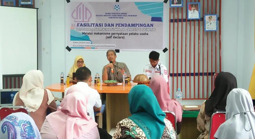 Sinjai, Suara Jelata—Dewan Pengurus Daerah (DPD) Asosiasi Industri Usaha Mikro Kecil Menengah Kabupaten Sinjai bersama Dinas Koperasi, UKM dan Tenaga Kerja memfasilitasi puluhan pelaku Usaha Mikro dan Kecil (UMK) dalam program Sertifikasi Halal Gratis (SEHATI) melalui mekanisme pernyataan pelaku usaha. Sabtu, (2/7/2022).
