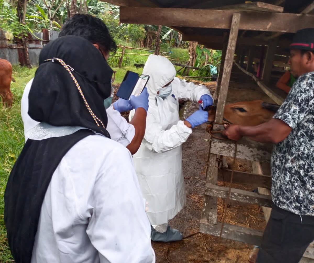 “Dan kepada peternak diharuskan menjaga kebersihan sebelum dan sesudah ke kandang sapi, karena pada dasarnya manusia juga bisa jadi pembawa dan pemindah virus tersebut” kuncinya.
