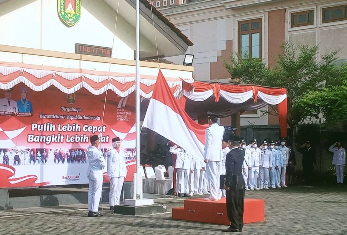 Upacara HUT Ke-77 Kemerdekaan RI tingkat Kecamatan Mertoyudan juga mengusung tema nasional “Pulih Lebih Cepat, Bangkit Lebih Kuat”. Upacara berlangsung lancar mulai pukul 07.30 WIB dan berakhir pukul 08.45 WIB. (Iwan)