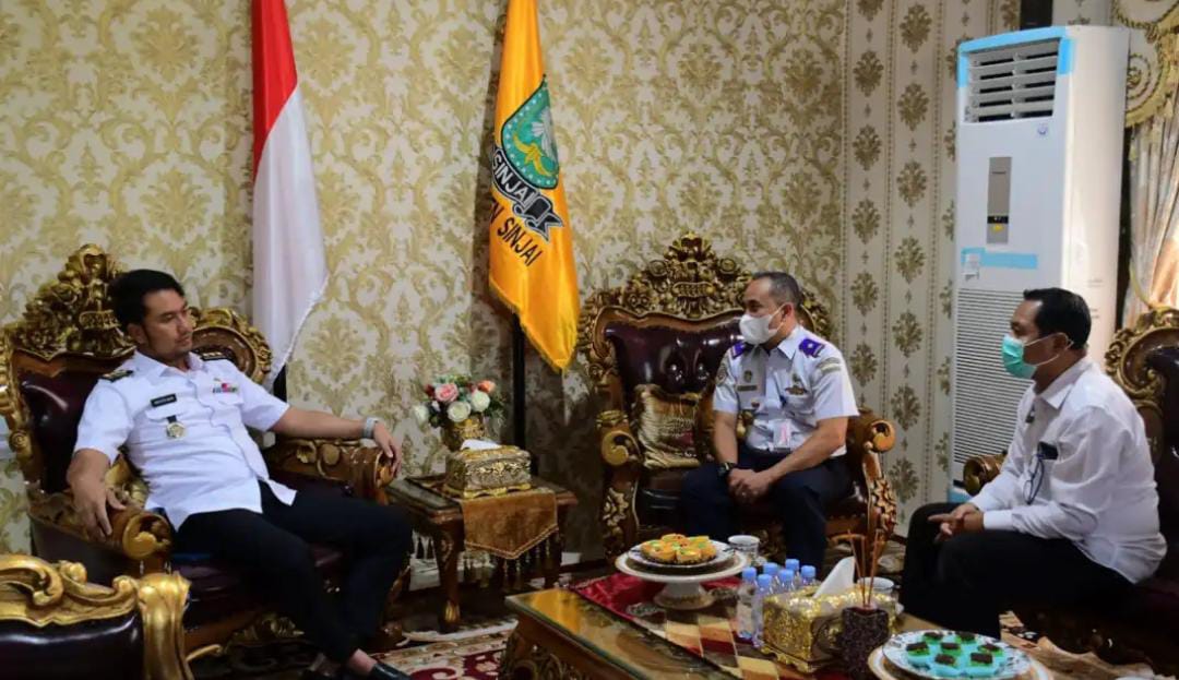 Sinjai, Suara Jelata—Bupati Sinjai, Andi Seto Asapa (ASA) menerima kunjungan kepala Kantor Unit Penyelenggara Teknis Pelabuhan Kelas III (Syahbandar) Sinjai, Herianto Bayupah di rumah jabatan Bupati, Rabu, (31/8/2022).