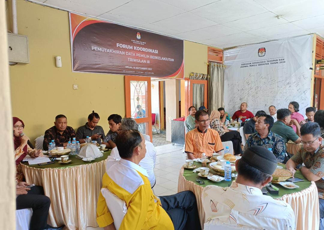 Pada pelaksanaan Forum Koordinasi Pemutakhiran Data Pemilih Berkelanjutan di Kantor KPU Sinjai, hadir Komisioner Bawaslu Sinjai, perwakilan Forkopimda, Kepala Desa, Pimpinan Partai Politik, serta awak media.