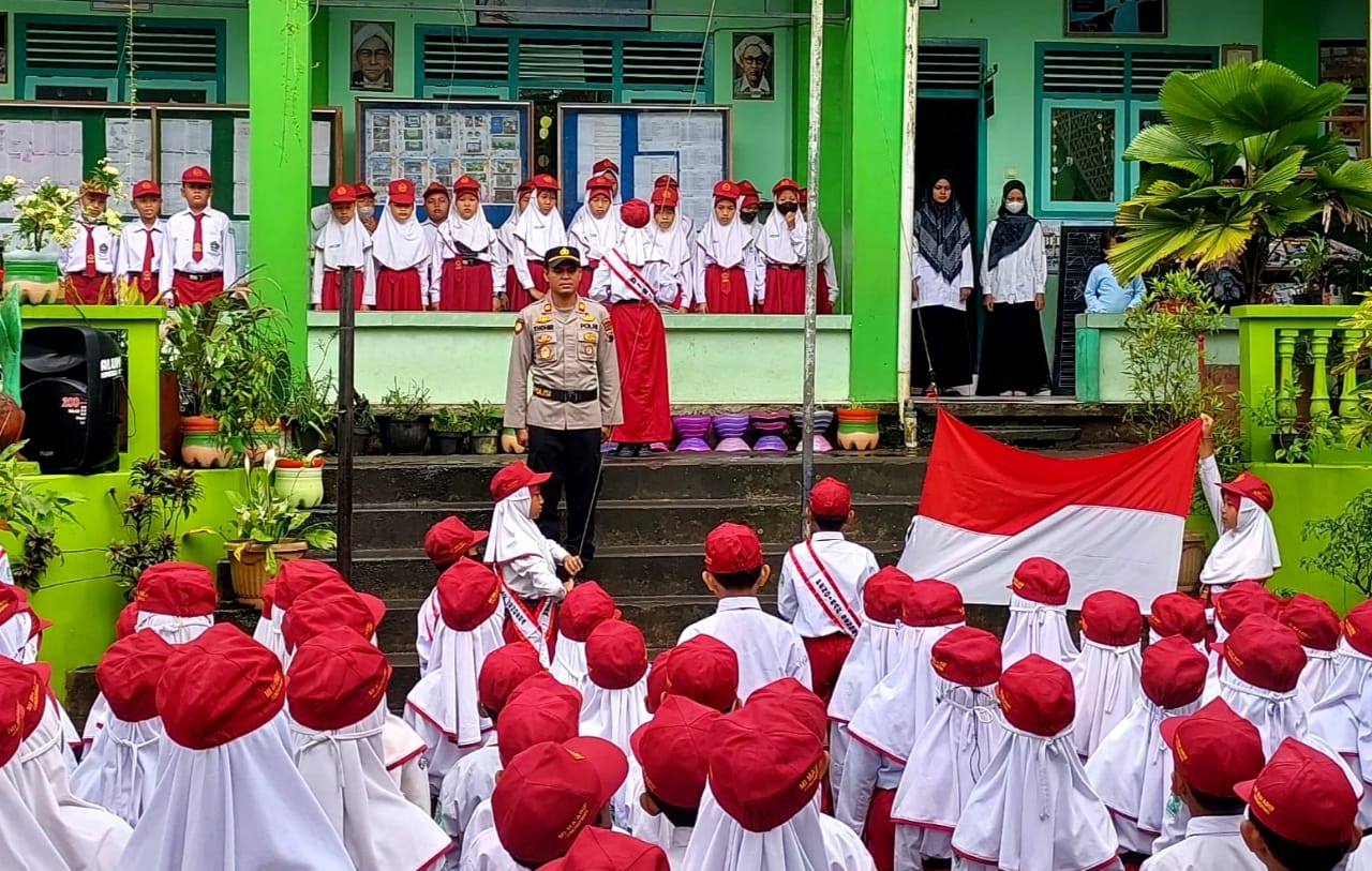 MAGELANG JATENG, Suara Jelata – Kapolsek Muntilan Polres Magelang AKP Abdul Muthohir, S.H., M.H. memimpin Upacara Bendera di halaman Madrasah Ibtidaiyah (MI) Ma’arif Gunungpring, Muntilan. Dalam kesempatan tersebut juga sekaligus melakukan pembinaan dan penyuluhan (Binluh) kepada siswa-siswi madrasah setempat, Senin (17/10/2022).