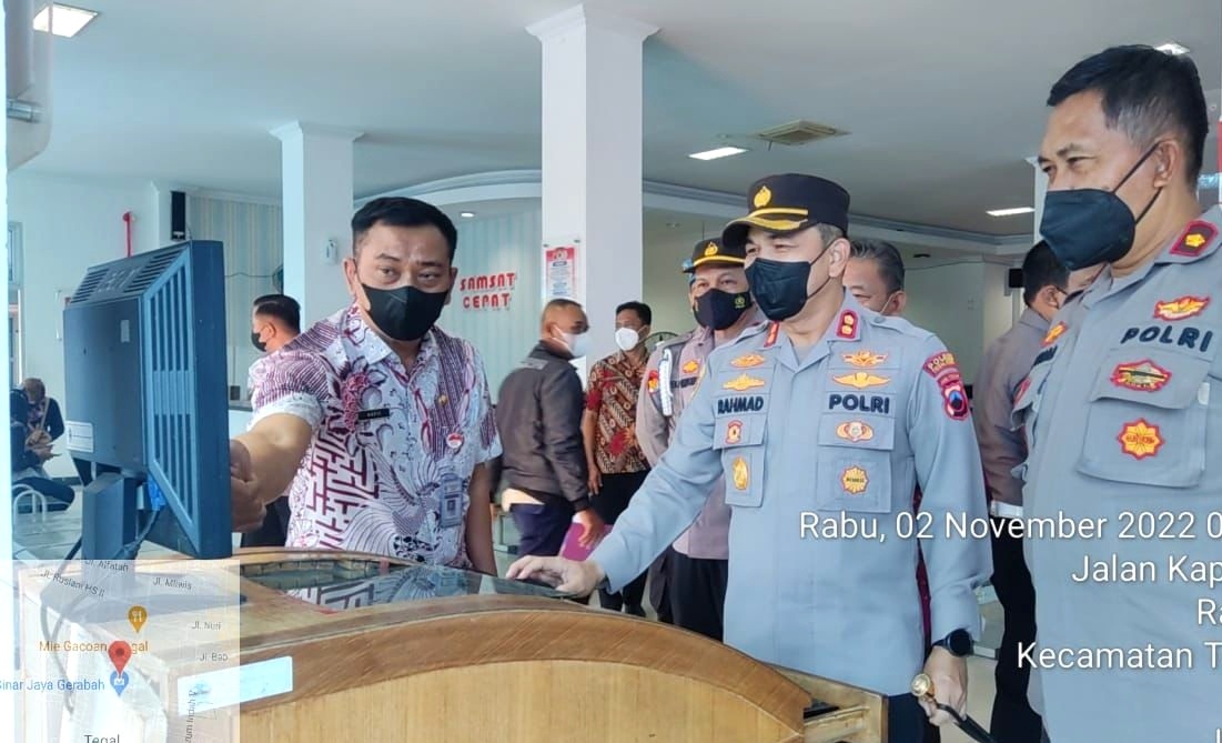 KOTA TEGAL JATENG, Suara Jelata – Kapolres Tegal Kota AKBP Rahmad Hidayat, S.S. melakukan inspeksi mendadak (sidak) pelayanan publik pada Unit Pengelolaan Pendapatan Daerah (UPPD) – Samsat Kota Tegal, Rabu (02/11/2022). Sidak dilakukan guna memastikan pelayanan terhadap masyarakat berjalan dengan baik.