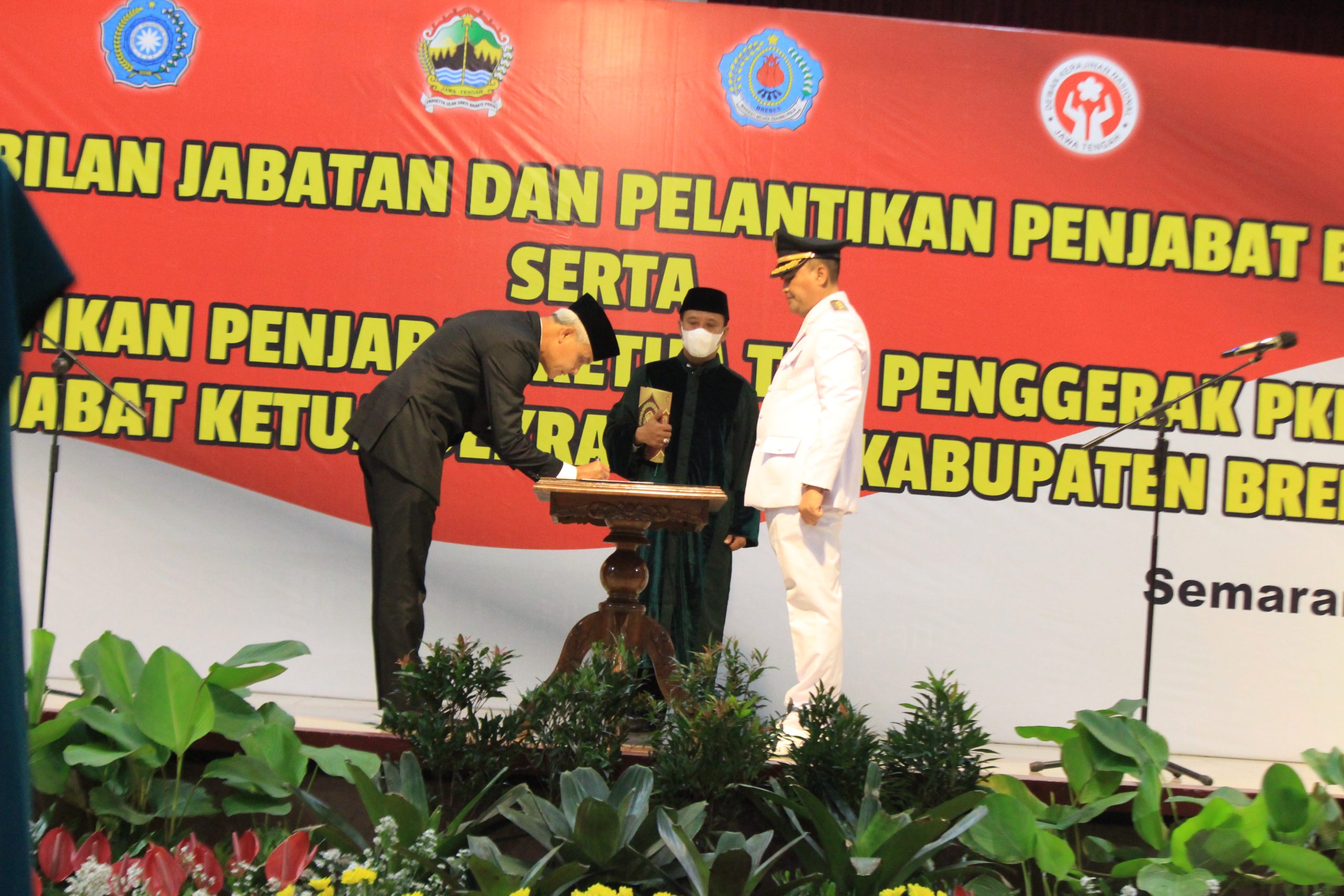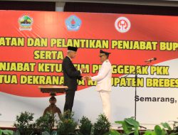 Dalam kesempatan tersebut juga dilantik Endang Supriyatni SH yang juga istri dari Urip Sihabudin sebagai Ketua Tim Penggerak PKK dan Ketua Dekranasda Kabupaten Brebes. (Olam)