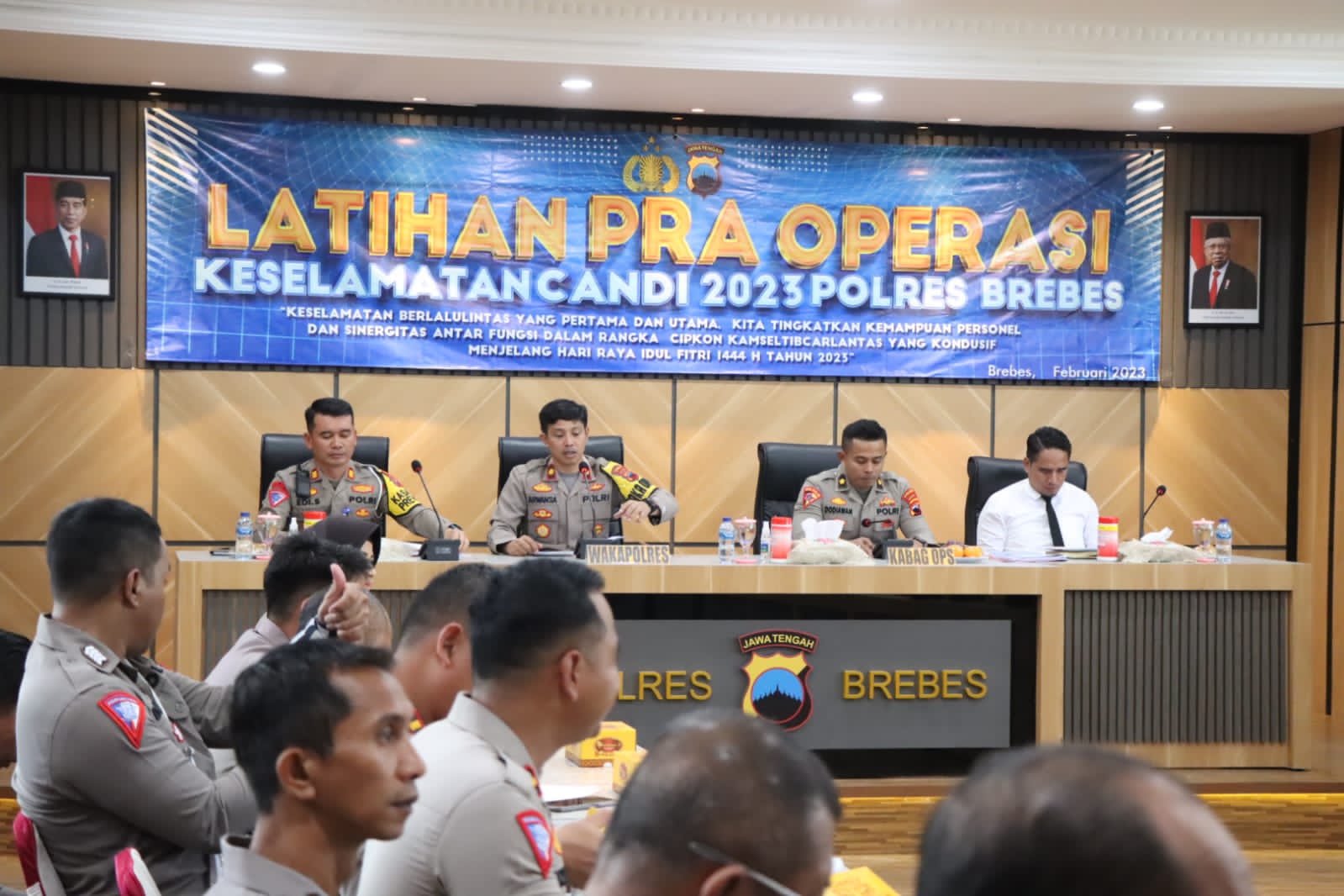 BREBES JATENG, Suara Jelata Polres Brebes Polda Jateng menggelar kegiatan Latihan Pra Operasi Keselamatan Lalu Lintas Candi 2023 di aula Mapolres Brebes, Senin (06/02).