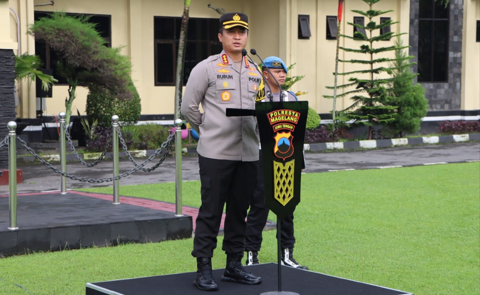 Sebelum memberikan arahan Kapolresta Magelang secara mendadak menunjuk Kasat Samapta Kompol Nur Alfian Zaelani, S.Pd untuk mengucapkan Tribrata dan Kasat Lantas AKP Satrio Bagus Wira W., S.I.K. mengucapkan Catur Prasetya. Sedang satu orang perwakilan ASN untuk mengucapkan Sapta Prasetya Korpri.
