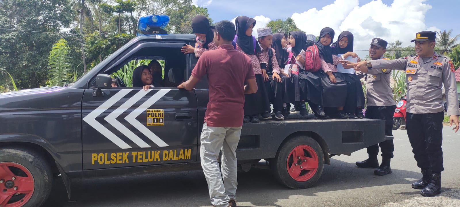 SIMEULUE, Suara Jalata – Polsek Teluk Dalam Polres Simeulue melakukan terobosan kreatif dengan mengantar anak-anak Sekolah Dasar (SD) pulang ke rumah menggunakan mobil dinas patroli