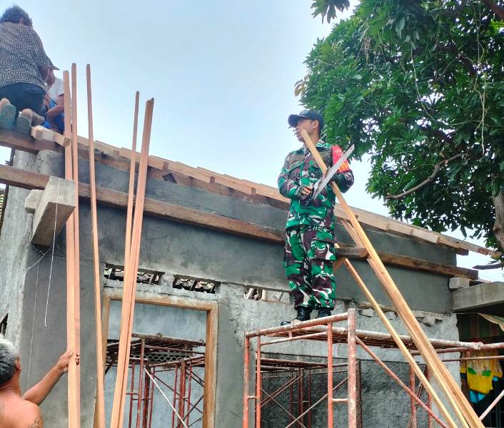 BREBES JATENG, Suara Jelata- Serka Sudirso Babinsa, Babinsa Koramil 01 Brebes Kodim 0713 Brebes, damping warga binaannya untuk melanjutkan pembangunan Pos Kamling di RW. 07 Kelurahan Pasarbatang, Kecamatan/Kabupaten Brebes, Jawa Tengah. Selasa (28/3/2023).