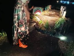 Babinsa bersama perangkat desa dan warga melakukan pemasangan portal dari kayu dan bambu untuk menutup jalan agar tidak dilewati karena membahayakan jiwa. (Olam)