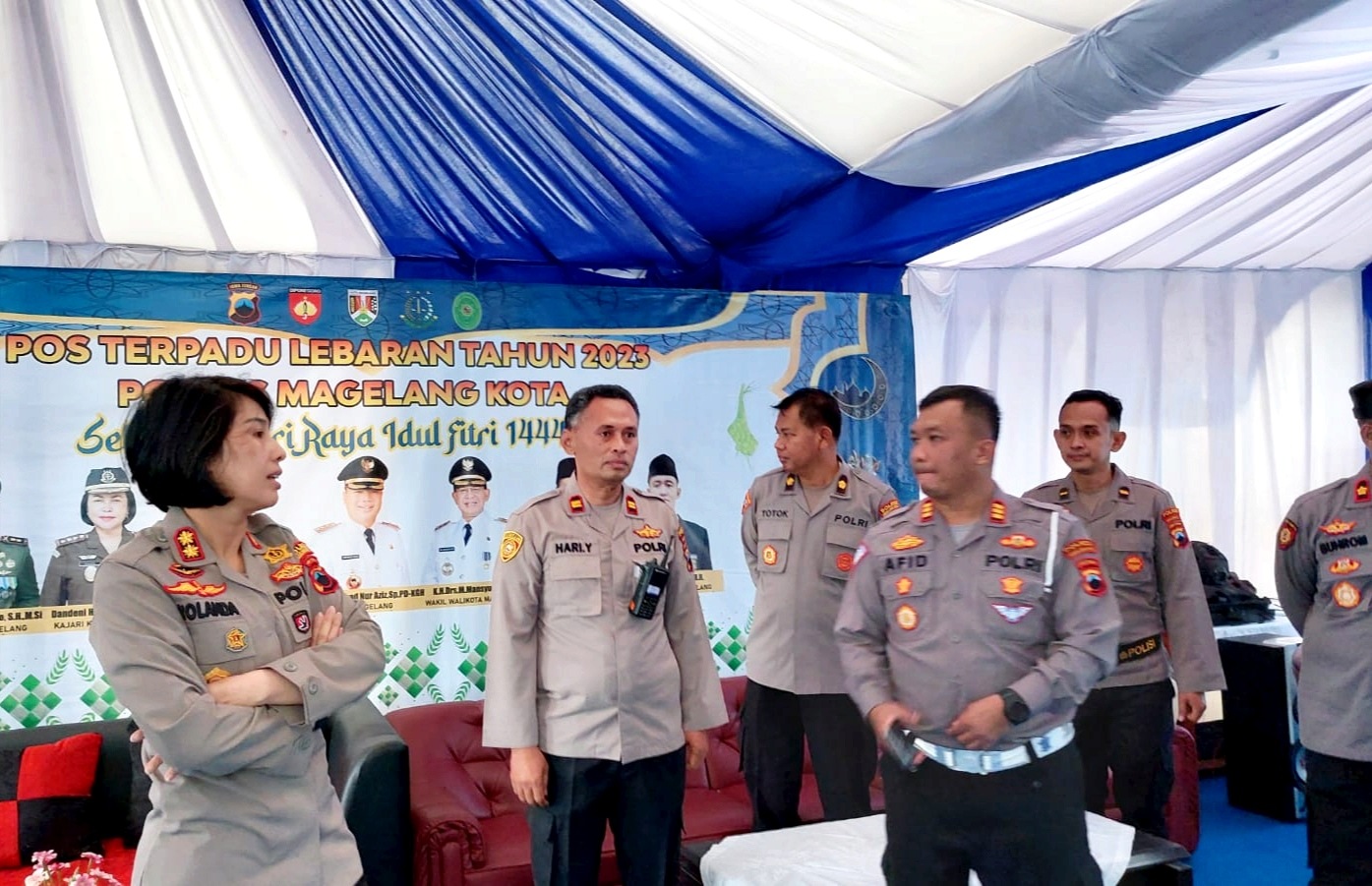KOTA MAGELANG JATENG, Suara Jelata – Kapolres Magelang Kota Polda Jawa Tengah AKBP Yolanda Evalyn Sebayang, S.I.K., M.M. melaksanakan pengecekan kesiapan Pos Pengamanan (Pospam), Pos Pelayanan (Posyan) dan Pos Terpadu Operasi Ketupat Candi 2023 Sabtu (15/4/2023) sore.