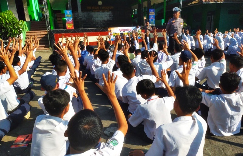 Acara ini diselenggarakan di halaman sekolah diikuti 323 siswa Klas X SMA Negeri Bandongan dengan antusias. Aiptu Mudriq dan anggota lalu lintas memeberikan materi penyuluhan bertajuk “Pelajar Tertib Berlalulintas”.