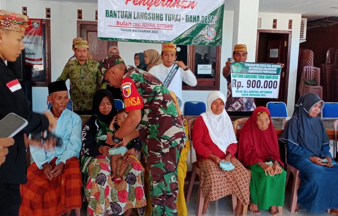 Sebanyak 71 keluarga di Desa Rekkerrek menerima BLT di Balai Desa Rekkerek. Sertu Gatot memberikan dukungan dan pendampingan penuh agar pembagian BLT berjalan lancar.