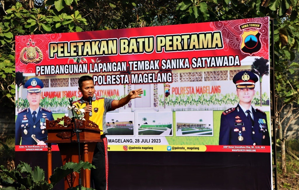 MAGELANG JATENG, Suara Jelata – Kapolresta Magelang Polda Jateng Kombes Pol Ruruh Wicaksono, S.I.K., S.H., M.H., menandani dimulainya pembangunan lapangan tembak. Kegiatan itu dengan melakukan peletakan batu pertama di lokasi pembangunan, Jumat (28/07/2023).
