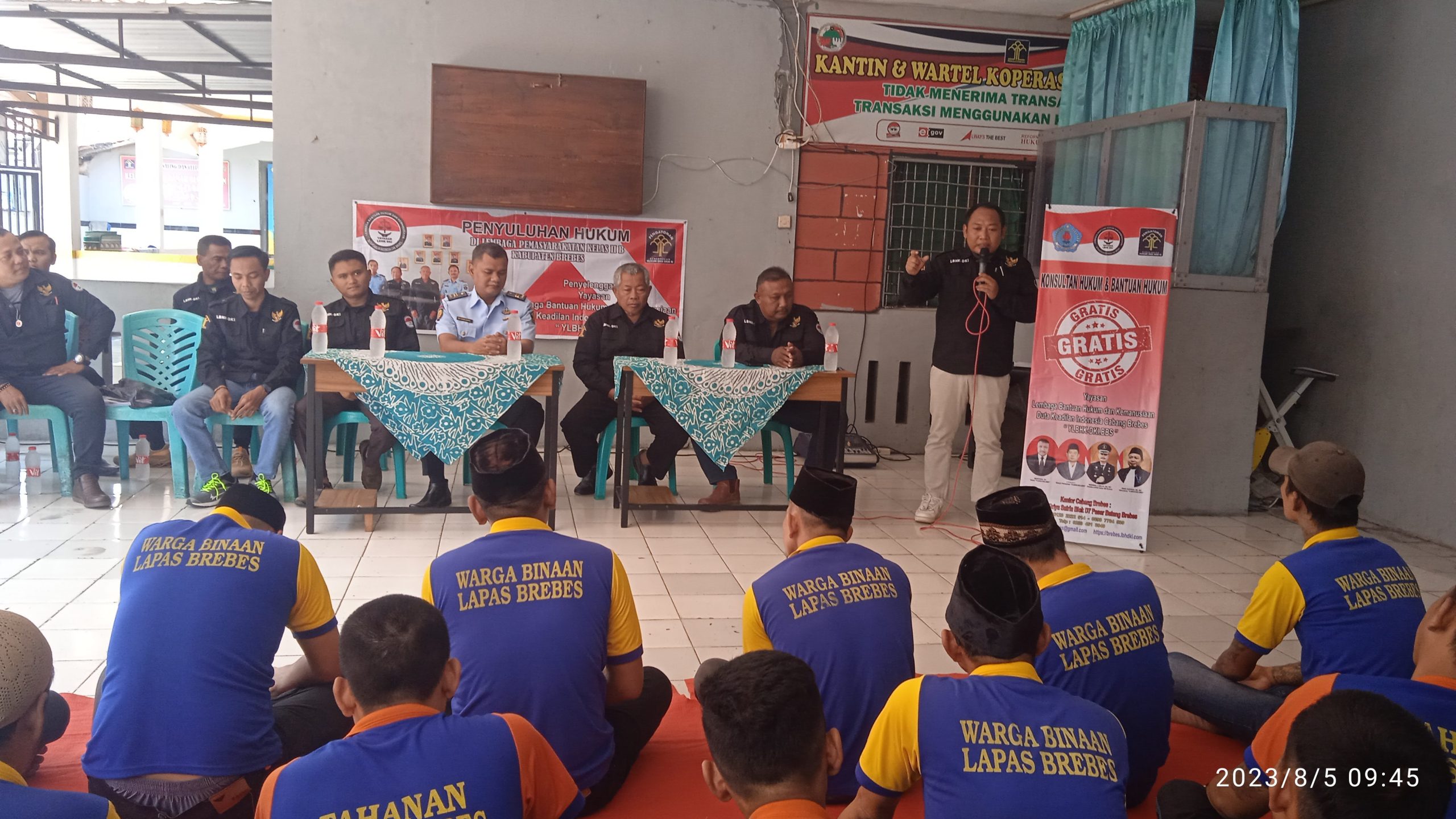 BREBES JATENG, Suara Jelata – Lembaga Bantuan Hukum dan Kemanusiaan Duta Keadilan Indonesia Cabang Brebes (YLBHK-DKI.BBS) menggelar penyuluhan hukum di Aula Lembaga Pemasyarakatan (Lapas) kelas II B Kabupaten Brebes, Provinsi Jawa Tengah, Sabtu (5/8/2023).