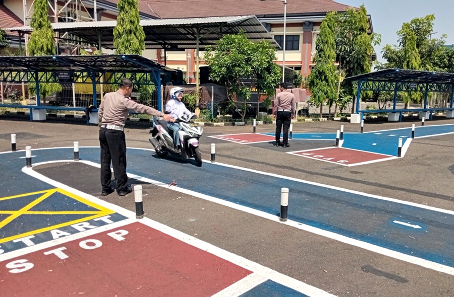 “Di sini ada titik pengereman pertama, belok kanan dan kiri, garis lurus, halangan termasuk pengereman mendadak. Jadi ini cuma jalurnya yang berubah, untuk kompetensi tetap sama,” kata AKBP Dydit Dwi Susanto.