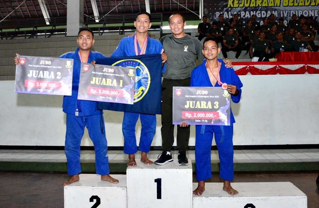 KOTA SEMARANG JATENG, Suara Jelata – Atlet Beladiri Judo Yonarmed 3/NP Prada Muhammad Bahrul Alam meraih Juara III pada Kejuaraan Beladiri Piala Pangdam IV/Diponegoro. Kejuaraan digelar di GOR Patriot, Jalan Perintis Kemerdekaan No. 156, Pudakpayung, Kecamatan Banyumanik, Kota Semarang, Jawa Tengah, Rabu (20/09/2023).