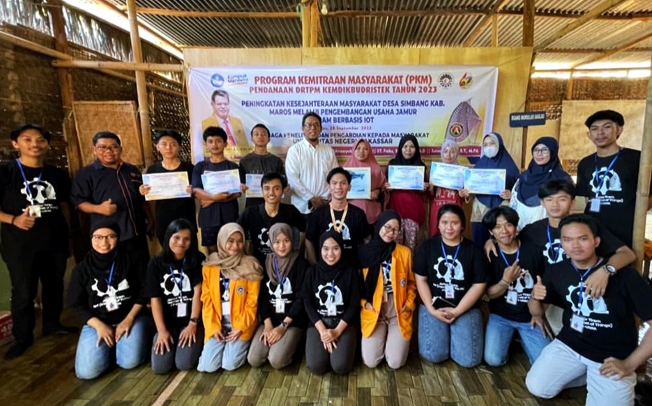 Kegiatan ini juga melibatkan Ketua Program Studi Teknik Elektronika Prof. Dr. Hendra Jaya, S.Pd, M.T. Sebagai bentuk partisipasi yang melibatkan mahasiswa dalam program MBKM bidang penelitian/riset melalui pelatihan dengan judul “Peningkatan Kesejahteraan Masyarakat Desa Simbang Kabupaten Maros Melalui Pengembangan Usaha Jamur Tiram berbasis IoT”.