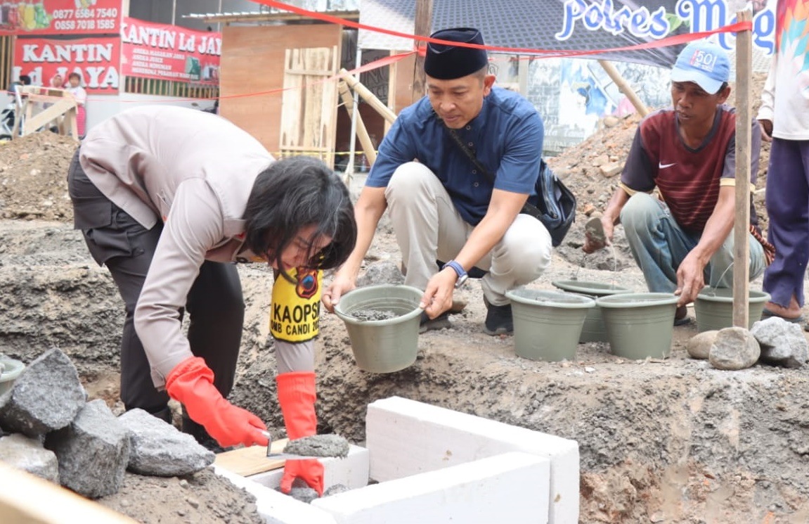 KOTA MAGELANG JATENG, Suara Jelata – Kapolres Magelang Kota Polda Jawa Tengah AKBP Yolanda Evalyn Sebayang, S.I.K., M.M. melakukan kegiatan peletakan batu pertama tanda dimulainya pembangunan Masjid Miftahurrahmah di lingkungan Mako Polres Magelang Kota, Jumat (03/11/2023).
