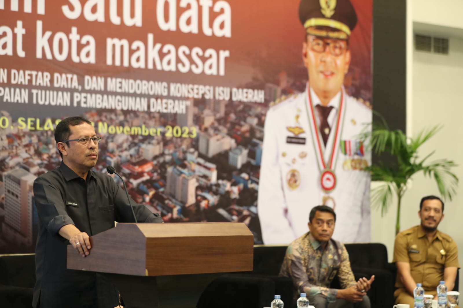 Dalam sambutannya, Sekda Kota Makassar menyampaikan pentingnya data yang valid dan akurat demi keberhasilan program pemerintah dalam rangka mensejahterakan masyarakat.