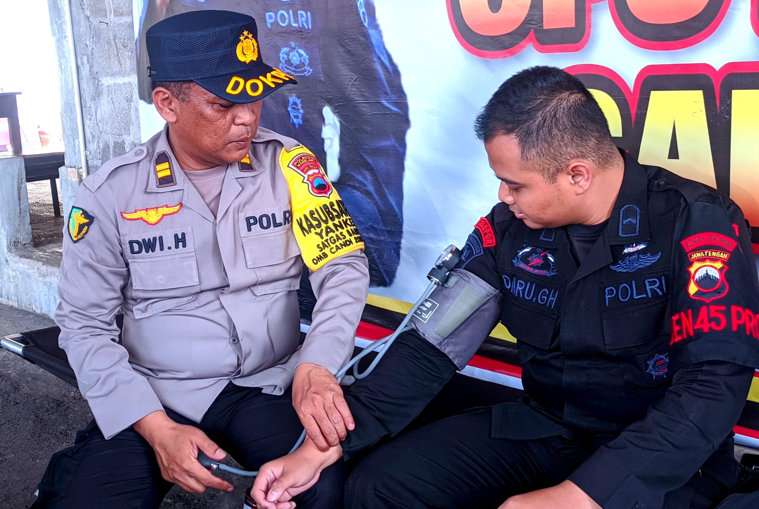“Kami lakukan pengecekan kesehatan dan pemeriksaan kepada petugas pengamanan di berbagai pos, termasuk Pos Pengamanan Taktis Sat Brimobda Polda Jawa Tengah di wilayah Salam, Kabupaten Magelang,” ungkap Kompol Eko Mardiyanto.