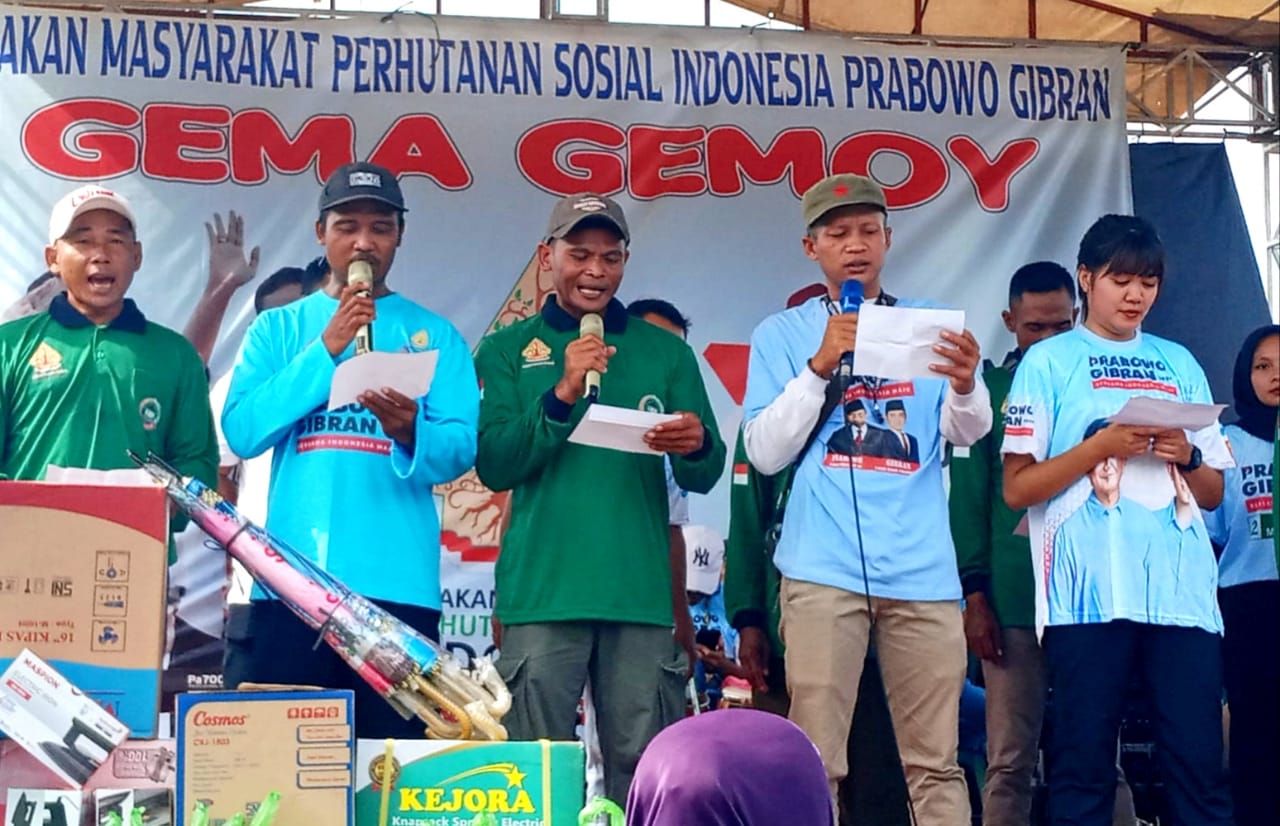 Dalam acara tersebut juga dilakukan pembacaan deklarasi dukungan Prabowo Gibran oleh Gerakan Masyarakat Perhutanan Sosial Indonesia (GEMA PSI).