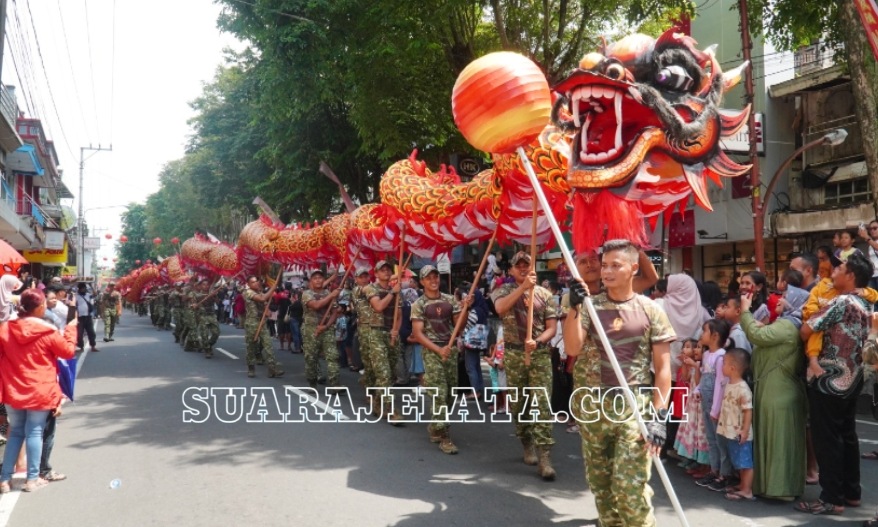KOTA MAGELANG JATENG, Suara Jelata – Pasukan Barongsai Naga Guntur Geni Kostrad ramaikan puncak perayaan Imlek yang ditutup dengan Festival Cap Go Meh. Kali ini mengusung tema “Imlek membangun persaudaraan sejati, menuju Indonesia Emas”. Kegiatan ini disaksikan oleh ribuan masyarakat dari Kota Magelang dan sekitarnya, Minggu (25/02/2024).