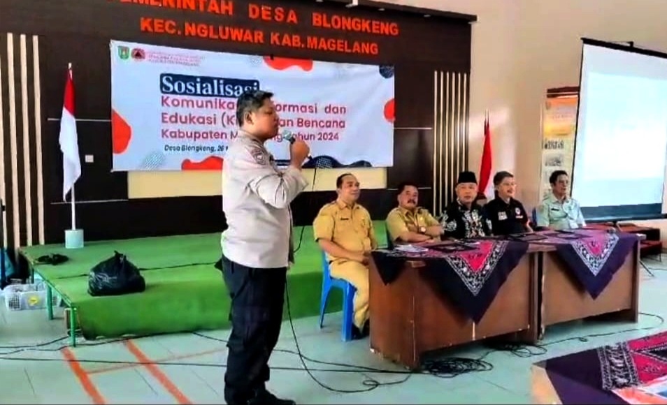 Acara dilanjutkan dengan Sosialisasi Komunikasi Edukasi Rawan Bencana Kabupaten Magelang Tahun 2024 oleh narasumber dari BPBD Kabupaten Magelang. Diketahui acara yang diadakan BPBD Kabupaten Magelang itu bekerjasama dengan Pemerintah Desa Blongkeng, Kecamatan Ngluwar. (Nar)