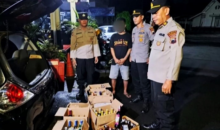 Kemudian dilakukan pemeriksaan, dan diketahui mobil tersebut milik pria berinisial W. Di dalam mobil itu didapati puluhan botol miras berbagai merk dan jenis.