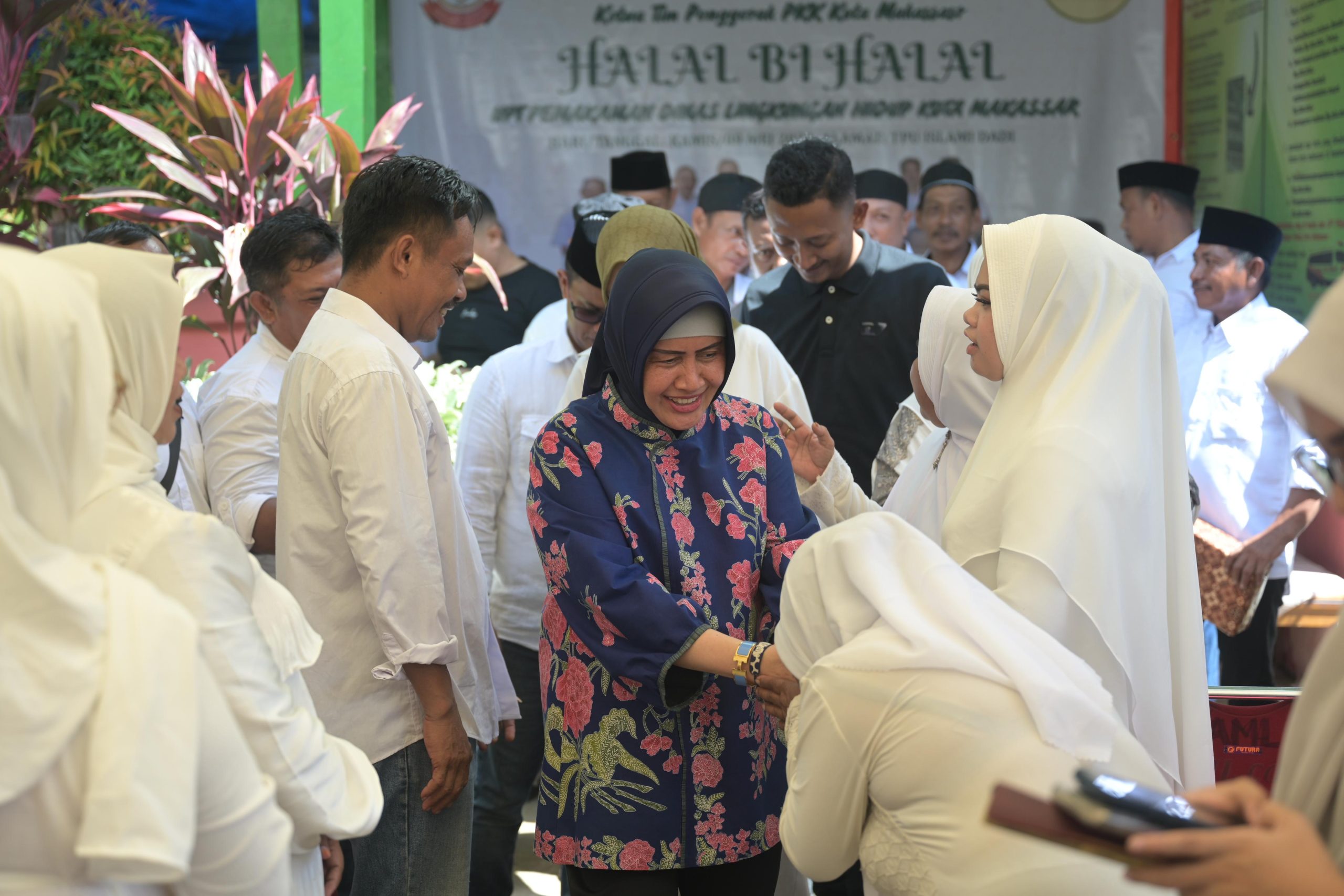 MAKASSAR,- Ketua TP PKK Kota Makassar Indira Yusuf Ismail didampingi Kepala Dinas Lingkungan Hidup hadir bersilaturahmi dengan seluruh pegawai UPT TPU se-Kota Makassar di Kawasan TPU Dadi Jalan Amirullah, Kamis (09/05/2024).