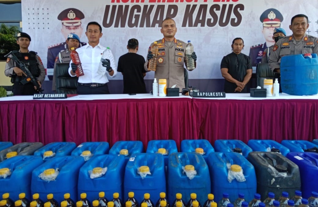 “Jumlah seluruhnya 508 (lima ratus delapan) botol dan 23 jerigen dengan jumlah total kurang lebih dari 1.500 liter Ciu,” sebut Kombes Pol Mustofa.