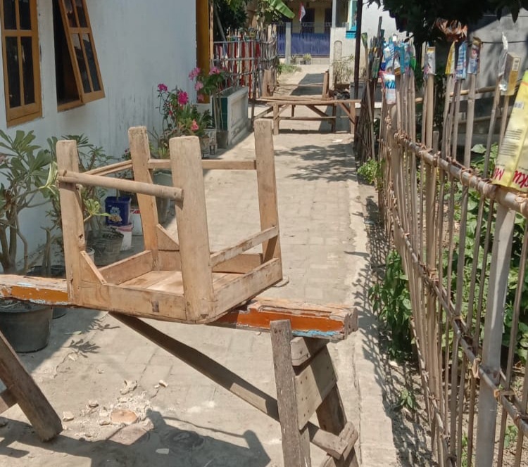 Seperti yang diketahui berdasarkan video yang dikirim warga, nampak jalan gang tersebut ditutup menggunakan kayu melintang yang ditindih kursi.
