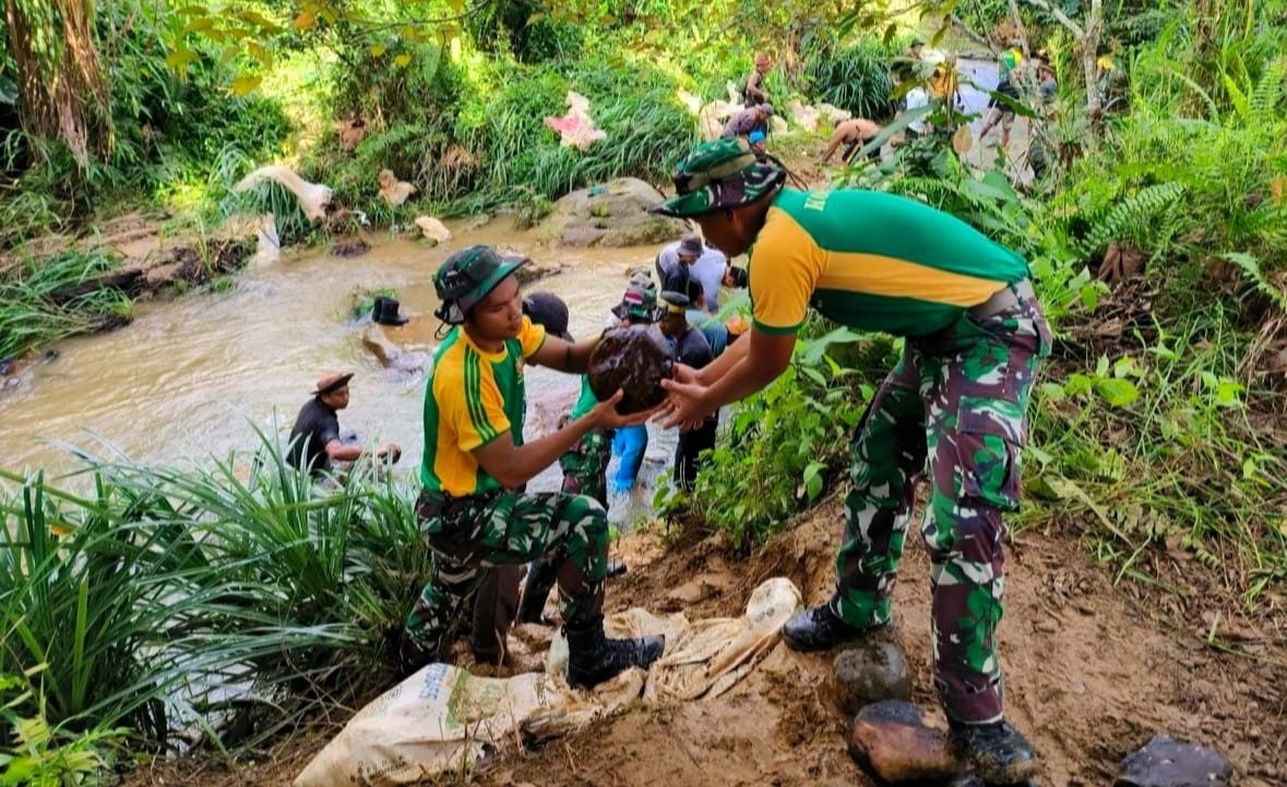 NUNUKAN KALTARA, Suara Jelata – Prajurit Satgas Pamtas Yonarmed 11 Kostrad dari Pos Simanggaris Baru melaksanakan kegiatan karya bakti memperbaiki jalan rusak di Desa Sekaduyan Taka, Kecamatan Simanggaris, Kabupaten Nunukan, Kalimantan Utara. Kegiatan ini dipimpin langsung oleh Serma Riski selaku Danpos Simanggaris Baru, bersama anggotanya turun ke lapangan untuk bekerja bahu-membahu dengan masyarakat setempat, Jumat (30/08/2024).